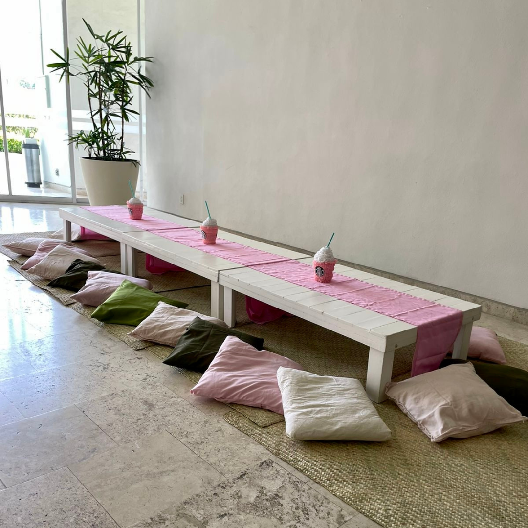 – 1 mesa de madera (blanca o natural)